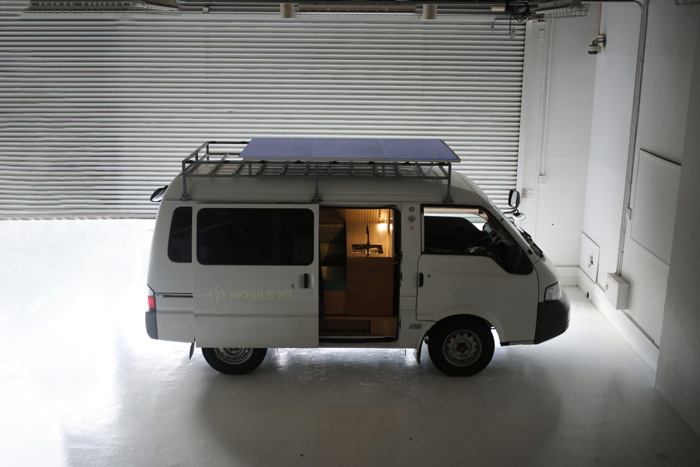 〈Mobile SS〉が提案する「MSS – KIT」は、サステナブルなエネルギーシステムを、より手軽に体感するための専用キット。ソーラーパネルと大容量リチウムイオンバッテリーをパッケージングすることで、用途や設置環境に応じてアレンジが可能になっている。特徴的なのは、このKITが装備をフル装備していない点にある。もともと〈Mobile SS〉はEVの移動充電スタンドとしてスタートした企画だが、普通充電機能はあえて省略。その理由に、2026年現在、日本国内のEV普及率は未だ約2%足らずで、より多くのユーザーさんにとっては、不必要な装備ともいえてしまう。そこで〈Mobile SS〉のシステムで役に立つポイントにだけフォーカスし、わずかながらでもソーラーで発電し、その電気をたくわえる。そんなシンプルな仕組みを、身近な車に搭載することで、場所に縛られないエネルギー体験が可能になる。つまりインフラのない場所でも、ビジネスシーンやアウトドアユースはもちろん、災害時の非常用電源としても、その活躍は大いに期待できる。「MSS – KIT」はあらゆる場所で電気をつくり、ためて、使う。その一連の体験こそが、現代のオアシスを生み出すファーストステップになるとみている。開発にはコンバートEVやEV開発を手がける〈オズモーターズ〉の協力によるものだが、発売時期は現在調整中。